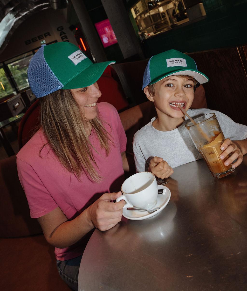 Découvrez la Casquette pour enfants et bébés, Mini Lawn, dès 9 mois. Style trucker iconique, couleur vert tendance, visière courbée. Disponible aussi en tailles maman et papa, y a de quoi faire de beaux looks duos et trios ! À porter en famille.