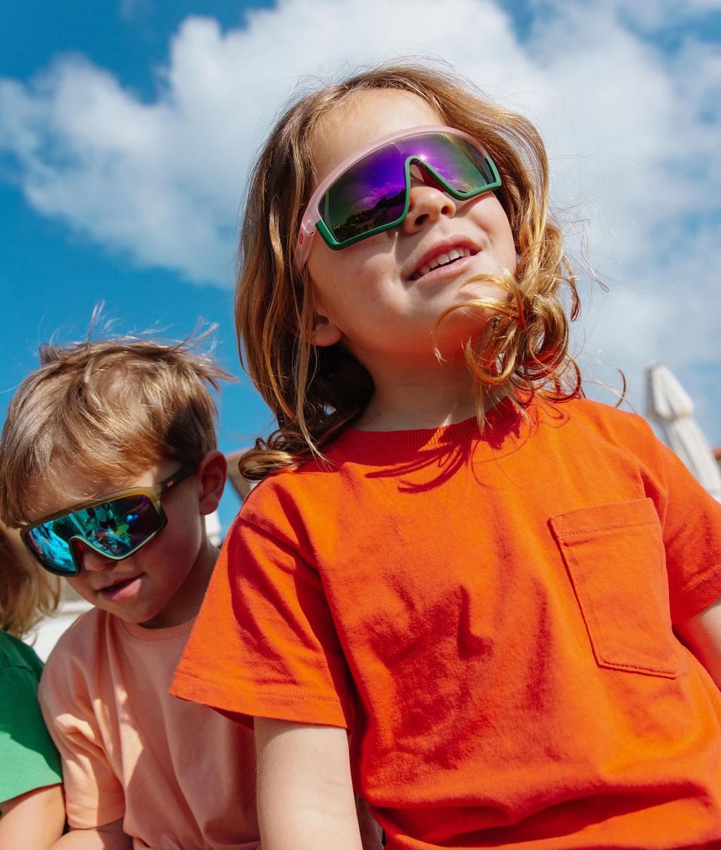 Craquez pour les Lunettes de soleil pour enfants, Plany Flora. Look sport, bicolore, ultra-stylé, sans compromis sur la protection. Verres polarisés Catégorie 3, UV400, monture enveloppante et légère, idéales pour les activités outdoor des Cool Kids. Dès 9 mois et jusqu’à 10 ans.