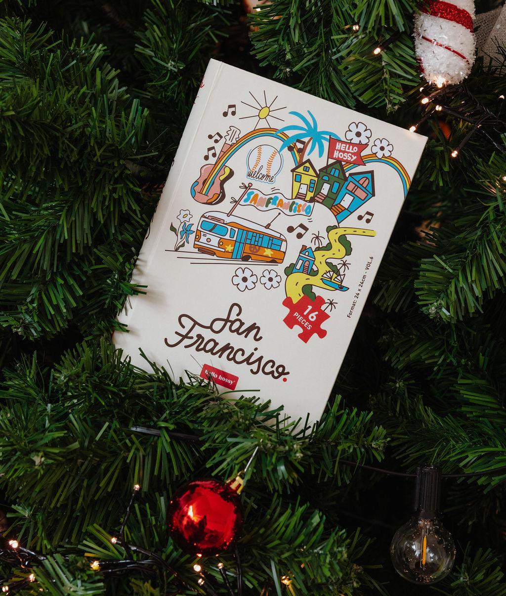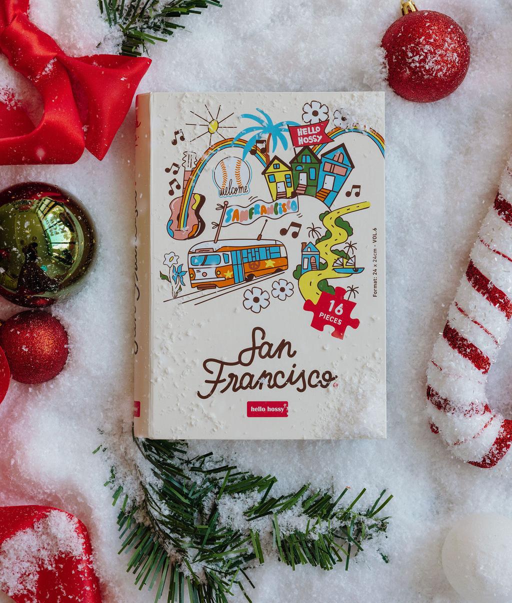 Discover the San Francisco Puzzle for children. 16 pieces, ideal for kids ages 3 and up. Iconic illustration, recycled cardboard, easy-to-handle pieces. Book-format packaging for use as decoration or storage box. To give or to collect!
